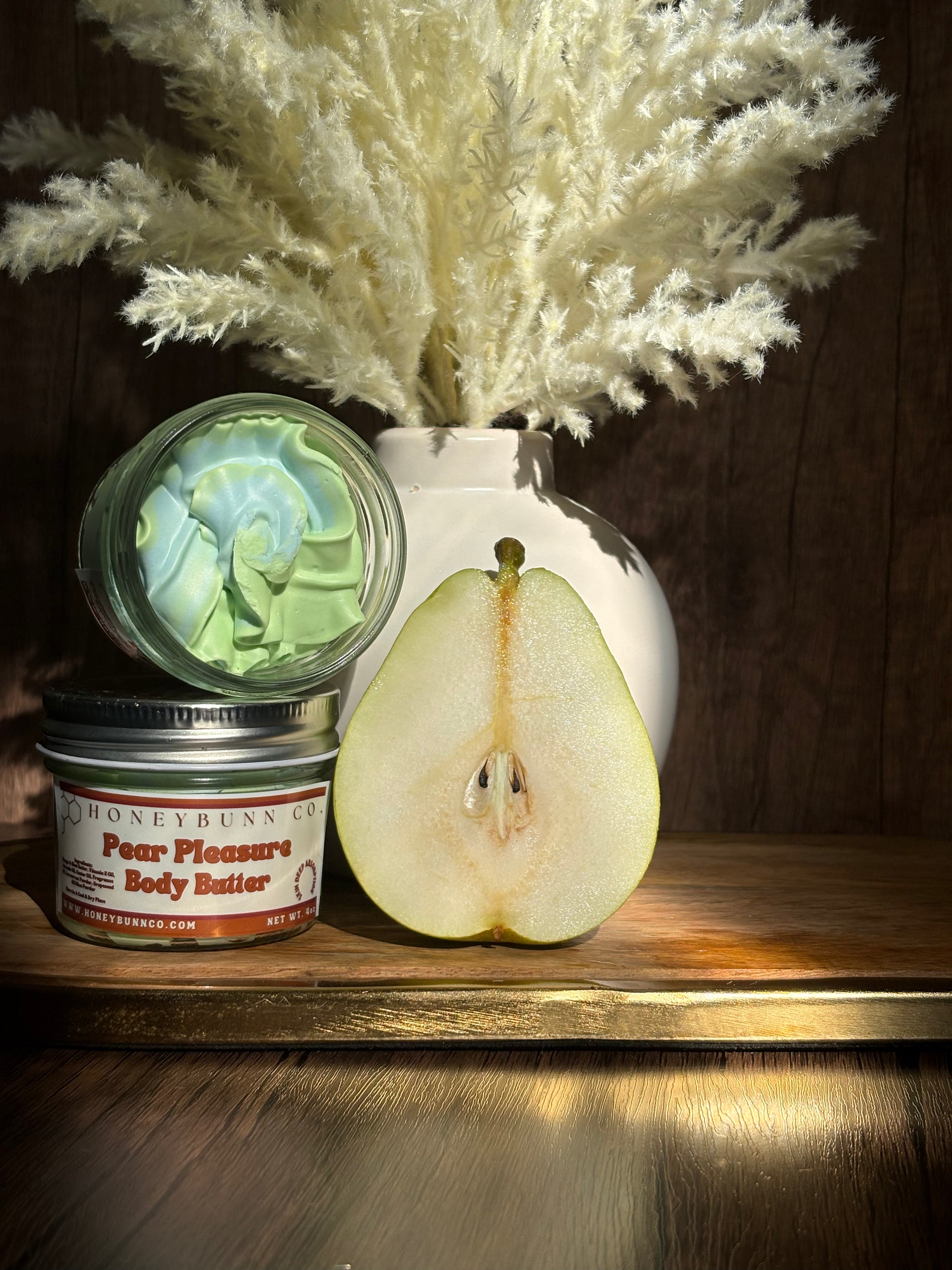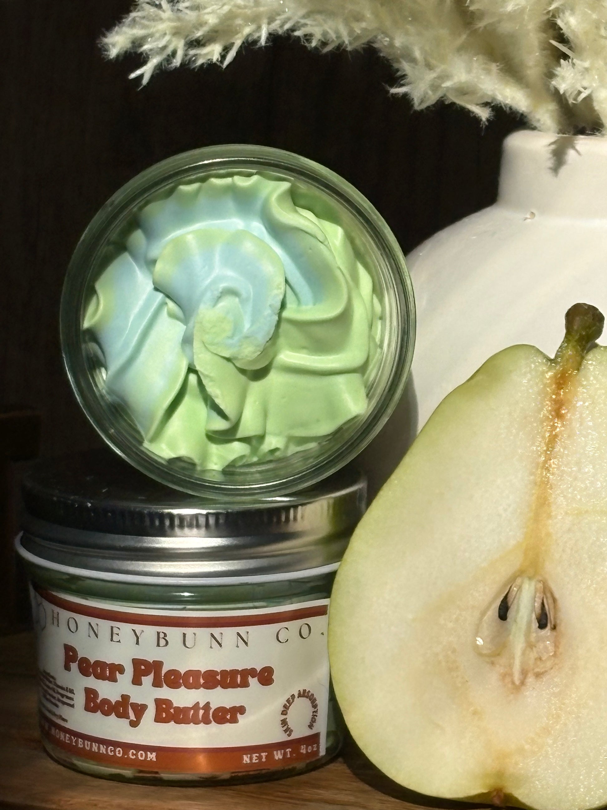 Follow with our ultra-whipped pear-scented body butter, infused with deep moisturizing ingredients that melt effortlessly into the skin. Light, juicy, and subtly sweet, the pear fragrance adds a fresh, clean finish while locking in long-lasting hydration for soft, glowing skin.