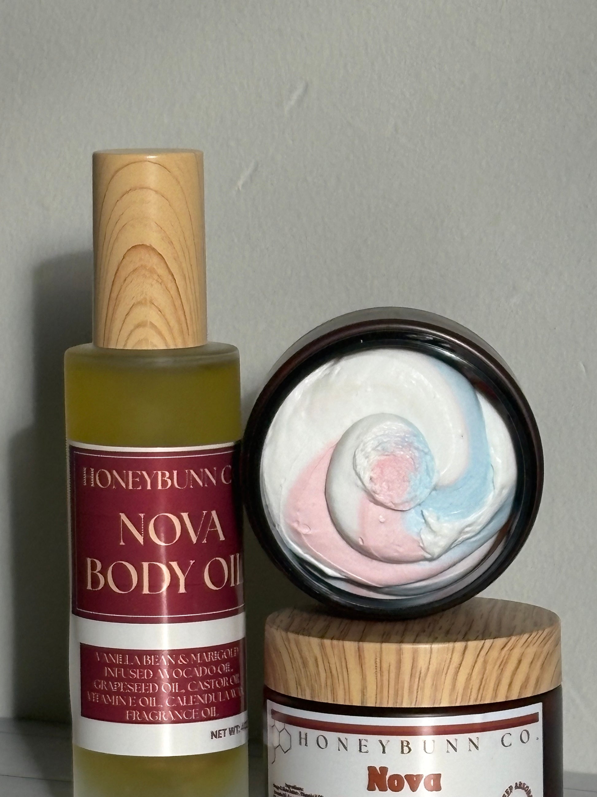 Our ultra-whipped body butter deeply nourishes and softens, while the lightweight body oil seals in moisture and delivers a luminous glow, keeping skin silky-smooth, radiant, and beautifully scented all day.